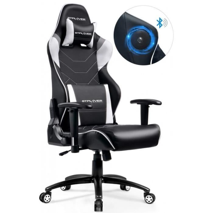 Gtplayer Chaise Gaming De Bureau Fauteuil De Bureau Chaise Gamer Music Avec Haut Parleur Bluetooth Design Ergonomique Blanc Cdiscount Maison